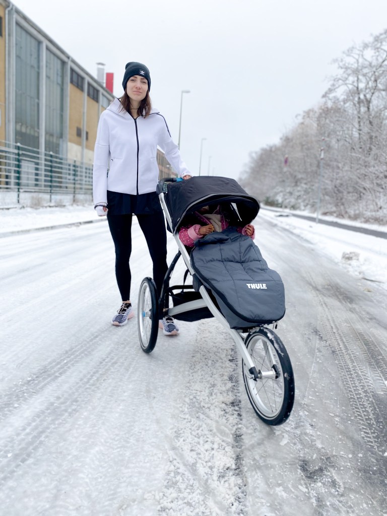 So lina and I get the Thule Glide, after some walks with this new Stroller we went for our first run. And what should I say, she fell asleep and sleept the whole run. And I really test that Stroller, we run through the park, over roots and trough sand, on asphalt and bumpy stone but she just slept. There i knew we can do this often, than Corna happens and I run much more this year than any year before. I also run my first time 20km together with her.