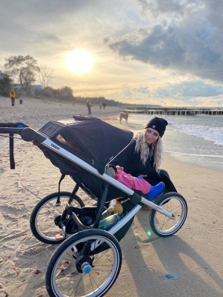 Lina und ich haben den Thule Glide bekommen und nach ein Paar spaziergängen um sie an den Wagen zu gewöhnen ging es los zu unserer Ersten gemeinsamen Laufrunde und was soll ich sagen sie ist direkt eingeschlafen und ich habe den Wagen an diesen Tag wirklich auf Herz und Nieren getestet. Über Stock und Stein sozusagen, durch den Park, über Wurzeln, durch Sand, auf Asphalt und Holperstein. Doch sie hat einfach geschlafen. Von da an war klar wir können öfters zusammen laufen gehen. Dann kam Corona und wir sind ständig laufen gewesen. Ich bin sogar mit ihr das erste mal 20 km gelaufen, da war sie soagr die ganze Zeit wach.